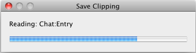 When you select one or more icons at the collection or relation level, the Save Selection as Clipping menu item (in the © menu) is enabled. Choosing this menu item “preflights” the selected structure — the progress dialog that appears during this phase is shown on the right — to make sure that a clipping can be made. Upon success, a standard ‘save file’ dialog appears, allowing you to name and save the clipping. (If the Clipping can not be made for any reason, Helix beeps, and a Why? message is available to explain what the problem is.) Although clippings may be saved anywhere, clippings that are saved in Helix’s ‘Clippings Folder’ can then be selected from the © menu, applying the clipping’s contents to the current location of the currently open collection. The Helix RADE clippings folder is found at ~/Library/Application Support/Helix/RADE/Clippings. You can create additional folders within this folder to organize clippings into logical groups. See the Helix RADE 6.1 Release Notes for more information on the Clippings menu. |