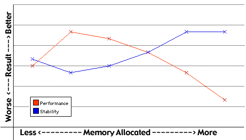 Theres almost always a trade-off between performance and stability. The faster you drive, the less control you have over your car. As you increase memory allocations you increase stability (to a point) and you decrease performance (again, to a point).