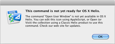 Now that we have your attention, the reason Preliminary Release 24 is not shipping today is simple: the “Preliminaries” are over. Today’s release is called, quite simply: Helix RADE 6.2. Today, Europa Pioneers get a copy of Helix RADE that will not run in Classic, will not run on PowerPC Macs and will not expire. Our June 10th Adventure has arrived at its intended destination, ready to move forward. There are now no strings, no caveats. As of today, neither AppleScript nor Classic are needed to do Helix collection design. Classic is history, and we’re happy to put that behind us. And as the Helix product family moves forward, the AppleScript integration will actually become more and more useful to those looking to work even more efficiently. But today’s big announcement is that Helix RADE’s graphic user interface is finally complete and our long-awaited future can now begin. From today forward, you will no longer be seeing either of the dialogs shown at right. They are presented here one last time out of sheer nostalgia — certainly not out of any need to fill space! Two years ago we started the Europa Pioneer Plan and gave you a first look at Helix RADE running in macOS. And so, for the last two years, the first dialog shown on the right would appear whenever you launched Helix RADE and the second one would appear whenever you double-clicked an icon in RADE. Month by month we added new functionality until now, finally, mercifully, these dialogs are history. Before we go on to describe the latest improvements — including the now-complete user editor — we should mention that you can find all the details of what has changed since Preliminary Release 23 in the Helix RADE 6.2 Release Notes. At some point, we hope to be able to pull all of the release notes together into one place, but that’s a project that has to wait for a few other more pressing items to be resolved. Stay tuned. Why is the User icon such a big deal?