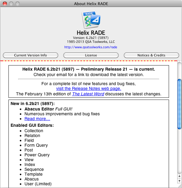 The Inspector popups deserve a special explanation. In Classic RADE, some tiles could be double clicked to open a dialog from which you chose the icons that went into the sockets. But not all tiles had a dialog and that made things a bit confusing. ‘Does this tile not respond to double clicks, or did I just miss?’ Now all tiles display their sockets in the Inspector, where you can choose from a context-aware list of candidate icons or define a constant. The Element Panel also has another trick up its sleeve, which deserves another mention: Of course you can change from one list to another by clicking on the switches at the top of the window, but you can also change which list is visible from your keyboard. Since Command-\ shows and hides the Element Panel, we set it up so that Option-Command-\ switches to the next list and Shift-Option-Command-\ switches to the previous one. But be aware that on some systems, these command keys are used by the OS to toggle some Universal Access features. If that’s the case for you, you might want to disable or change those settings in the Keyboard Shortcuts System Preference panel, or assign new keys to the Helix commands. Last month we described how we were going to use color in the abacus editor but how this works in practice was not so obvious. Now you can begin to see how the colors provide feedback as you work. The silent clip shown here illustrates, in a matter of seconds, what takes so many words to express. Watch it and see how tiles are dragged and dropped and connected and pay particular attention to the colors of the arrows and the sockets and how the background of the window changes color to reflect the output format of the abacus. (If an abacus window has a white background, that means it is not constructed properly, giving you a hint that you should look for disconnected icons and arrows.) As you drag a tile from the Element Panel, the actual image of the tile appears. When you release it in the abacus window, it moves to a space near the upper left corner by default. As you add more tiles, they continue to ‘auto-align’ so the total expression is always in view. We gained this feature almost by accident. Take some time to let it grow on you, then let us know what you think. We’re open to changing it, but didn’t want to spend time on that when there are bigger issues to confront. A few unfinished featuresWith the abacus editor functionality restored, we are about to begin working on the user editor. That’s the last editor to do before the macOS RADE graphical user interface is complete. Many Helix users, however, especially those who never build applications for deployment in Client/Server, never use the user editor because it is unnecessary for what they are doing. If you are one of those users, with Preliminary Release 21, there is nothing that should prevent you from moving into to RADE 6.2 permanently. If you have been following this saga and thinking about it, the next interface feature we implement will be something you may never need. Thus, for you, Helix RADE 6.2 is ready. It’s time. Much of what we have already done is complete or near-complete. The parts work as intended. We have plans to do some fine-tuning, but right now the editors do all they are expected to do. Most of the ‘final touches’ we are deferring are things that can wait for now. In fact, they are mostly new features you never had before, so you won’t miss them, techically speaking. Look for them to debut in the not-too-distant future. For example, Preliminary Release 19 introduced the new Helix template editor, which boasts such new features as the ability to tab from rectangle to rectangle, and the ability — through the Inspector — to precisely align rectangles with actual coordinate values. We also enhanced restored the keyboard nudging and resizing capabilities dramatically. The way we wrote our code, we can quickly extend those same capabilities to the abacus editor, adding keyboard control to the abacus workspace. Nudging tiles around may seem more like a time-waster than anything, but Helix designers know that in this visual language, there are times when the visuals help or hinder comprehension. For those of you who need a precise layout so you can focus on the contents of the abacus, this will come at a later date. For now you’ll have to drag them into alignment just like you always did before, or use the new tile alignment commands we introduced last month. The months aheadThere are only two and a half months left before the end of the Europa Pioneer Plan’s second year. Whether we’ll put out two (2) or three (3) more releases before the Plan concludes has yet to be determined. But the last mountain we have to climb — the user editor — looms directly ahead of us. Pardon a slight tongue-in-cheek here, but if any of you have any fondness for the Classic user editor, the one that clings to the menu bar like a ladder in a shoe store, we can assure you of one thing: you will be disappointed by what we are about to do. For the rest of you, we think the new user editor will be a breath of fresh air. As we just noted, May 31st marks the end of the second year of the Europa Pioneer Plan. We are becoming more and more confident that we are going to make it — that Helix RADE 6.2 will be feature complete by then. But even if something comes up and we miss that date, those who joined the Europa Pioneer Plan (and remained current) will have an official Helix 6.2 license and not be asked to pay for the inevitable maintenance releases. For those who did not, we’ll offer an upgrade path from prior versions. Once Helix RADE 6.2 is set free, we plan to shift our focus to getting Client/Server 6.2 out the door. Then, we have a few fun things up our sleeves, more about which will be discussed in the months to come. Please remember, even at this late date, that we still need all the financial help we can get to finish this job, and that yo